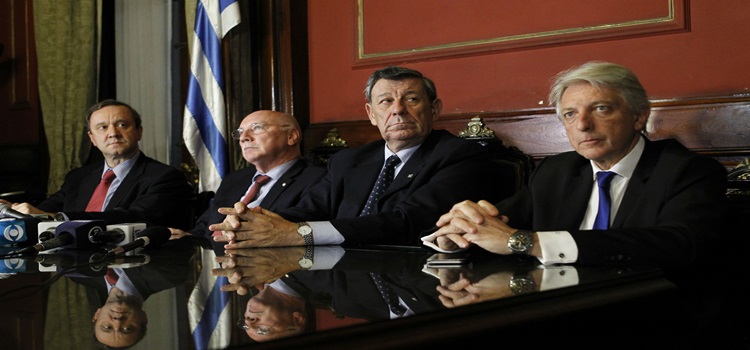 El encuentro se realizó en la sede del Ministerio de Relaciones Exteriores, en Montevideo, entre el titular de esta cartera, Nin Novoa; el vicecanciller de Paraguay, Eladio Loizaga; el subsecretario de Relaciones Exteriores de Argentina, Carlos Foradori; y el secretario general de América del Sur, Central y del Caribe de Brasil, Paulo Estivallet.