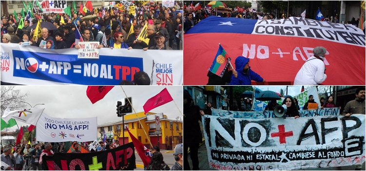 Llaman a la “fugamasiva” de dos AFP durante multitudinaria marcha contra el sistema de pensiones.