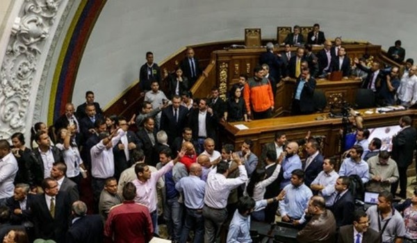 La unicameral Asamblea Nacional de Venezuela, dominada por la oposición de derecha, declaró este domingo que el gobierno realizó un golpe de Estado, durante una ruidosa sesión que fue interrumpida cuando militantes oficialistas irrumpieron en la cámara. Los legisladores se comprometieron a enjuiciar al presidente Nicolás Maduro después de que el Consejo Nacional Electoral (CNE) bloqueó el jueves la campaña de la oposición para revocar el cargo al mandatario.