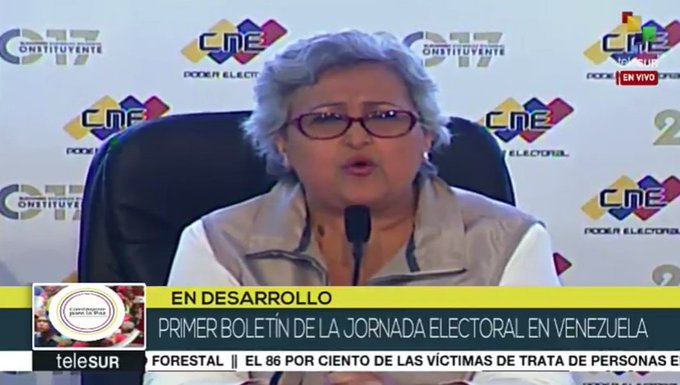 #ENVIVO | #Constituyente: "Esta ha sido una elección extraordinaria" asegura la directora del #CNE de #Venezuelahttp://bit.ly/teleSUR