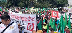 En su intervención, Marco Antonio Ortiz, de la Coalición de Organizaciones Democráticas, Urbanas y Campesinas (CODUC) señaló que la movilización campesina es para reclamarle al gobierno la falta de disposición y voluntad política para cumplir acuerdos y dijo que el Tratado de Libre Comercio se tiene que cancelar porque lo único que ha generado es mayor pobreza, desempleo y violencia.