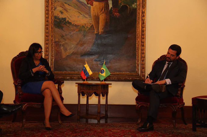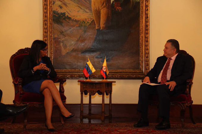 Delcy Rodríguez @DrodriguezVenHoy sostuve reunión junto al Canciller con Embajadores y Encargados dNegocios d los gobiernos coalicionados para la intervención de Venezuela