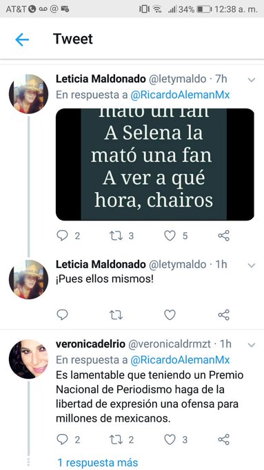 Alemán retuiteó una publicación que decía: "A John Lennon lo mató un fan. A Versace lo mató un fan. A Selena la mató un fan. A ver a qué hora, chairos". Con la palabra 'chairos' en México se denomina a personas vinculadas a la política de extrema izquierda. Por ello quedó clara la referencia del periodista a los simpatizantes de López Labrador.