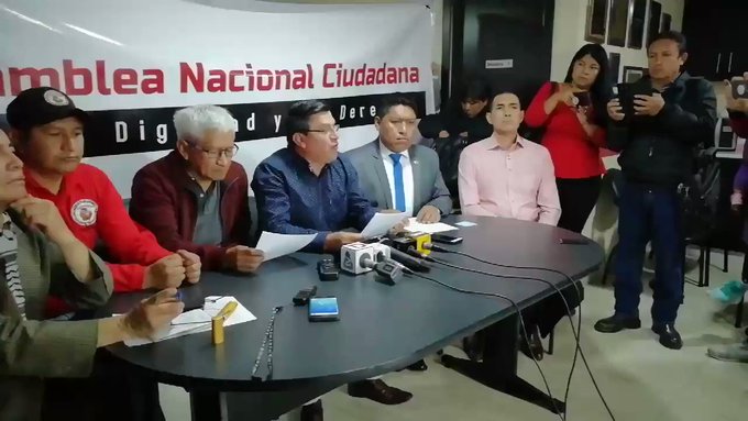 Convocamos a la Primera Asamblea Nacional Ciudadana por la Dignidad y los Derechos a todos los sectores afectados por las políticas neoliberales del gobierno y el bloque en el poder, el día sábado 12 de enero de 2019, con el objetivo de constituir una amplia plataforma de unidad de la ciudadanía y sectores populares, definir políticas económicas y sociales alternativas al neoliberalismo e impulsar nuevas acciones de lucha en defensa de los derechos del pueblo y la ciudadanía, la justicia social, el estado de derecho y la democracia.