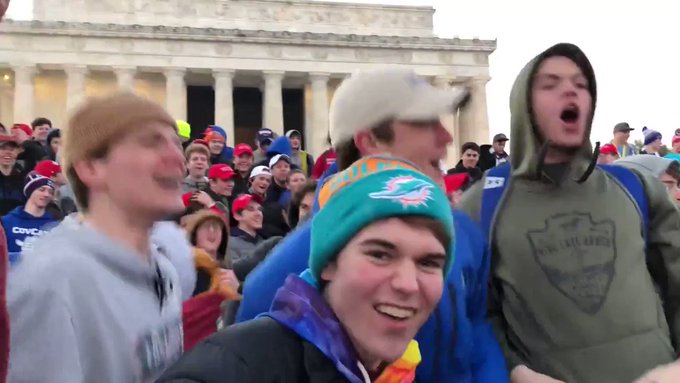 Después de que su familia contratara a una empresa de relaciones públicas vinculada con el Partido Republicano, al joven Sandmann le dieron en la mañana del miércoles casi nueve minutos de un programa nacional de desayunos para defender su postura. Al hacer esto posible, los medios conservadores están legitimando la agresividad de los jóvenes como forma de expresión política y tratando de desacreditar aún más a progresistas famosos y a medios de comunicación que fundamentan en hechos su información. De hecho, han logrado confundir a muchos medios, que están abandonando la interpretación más clara y evidente hecha sobre los cantos y gestos de jóvenes que imitaban con sus brazos el movimiento de un hacha de guerra india.