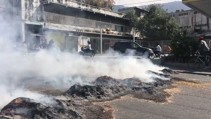 Bloqueos en llamas siguen encontrándose en varios sectores dela capital, hoy en calma mientras habitantes de #PuertoPrincipe esperan manifestaciones anunciadas para el domingo rumbo a Palacio Nacional #Haití #HaitíEnCrísis @teleSURtv