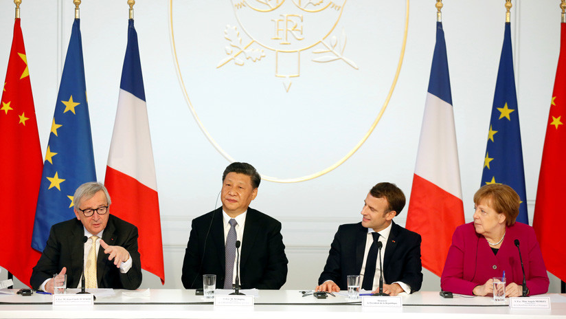 Reunión del presidente Xi Jinping con el presidente de la Comisión Europea, Jean-Claude Juncker, el presidente de Francia, Emmanuel Macron, y la canciller alemana, Angela Merkel, el 26 de marzo de 2019