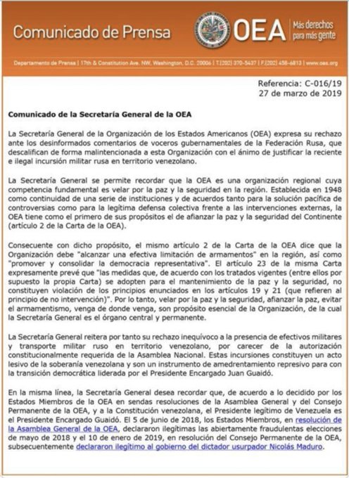 1/3 Así miente el Secretario General de la OEA: en un comunicado afirma que la Asamblea General y el Consejo Permanente de esa organización reconocieron a un dictador títere impuesto por los EE.UU. https://twitter.com/almagro_oea2015/status/1110940804284104706?s=12 …