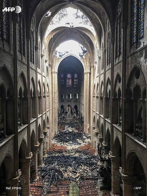 Photo de l’intérieur de #NotreDame par l’@afpfr #NodreDameDeParis #NotreDamedeParis