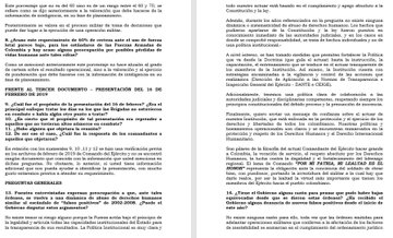 Dijo que existen dos procesos judiciales abiertos, donde se encontraron pruebas de que dos miembros de las extintas Fuerzas Armadas Revolucionarias de Colombia (Farc) fueron asesinados por miembros del Ejército. El curso de la investigación continuará con su equipo legal, que espera que se establezcan las responsabilidades penales de los autores y de quienes dieron las órdenes.