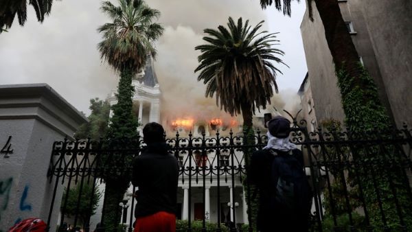 Lo primero que se vio arder fue el techo de madera de la edificación donde los carros de bomberos tuvieron problemas para desplegarse por la presencia de manifestantes, informaron fuentes de la Intendencia de Santiago.