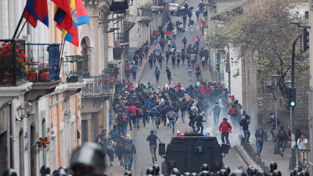 El presidente Lenín Moreno, en Ecuador, necesitó del respaldo y la represión de las fuerzas armadas para imponer el paquetazo de medidas neoliberales. Su foto junto a los cuatro representantes de las fuerzas armadas puso en evidencia el papel castrense en el sostenimiento de un gobierno impopular. En Chile, Sebastián Piñera quiso imponer más medidas neoliberales y logró un estallido social. Su respuesta fue decretar el estado de emergencia y aplicar mano dura de la mano de Carabineros y fuerzas arnadas.