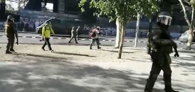 @plaza_dignidadNuevamente Paza de la Dignidad se encuentra militarizada. El Gobierno siguen en guerra contra un enemigo poderoso e implacable (acá la gente).