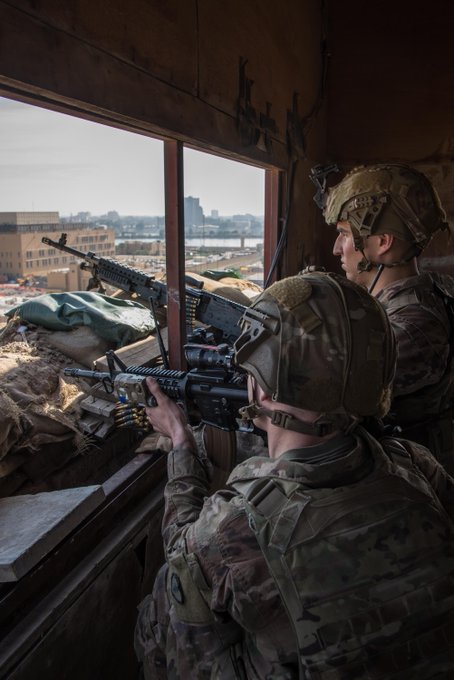 .@USArmy Soldiers provide armed overwatch at the U.S. Embassy Compound in Baghdad, Iraq, Jan. 1, 2020.