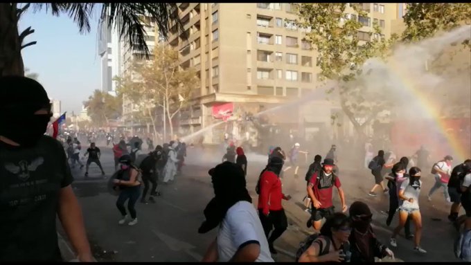 carabineros de FFEE intentan impedir -con cañones de agua, bombas lacrimógenas y encerronas- manifestaciones en el Centro de Santiago. (19:08) #Marzo