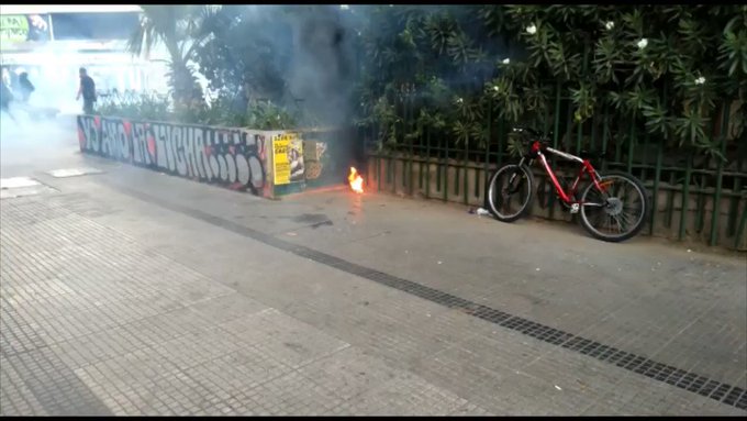 La otra cara de la moneda se registró en otro sector aledaño a la Plaza de la Dignidad, ya que nuevamente se registraron enfrentamientos con Fuerzas Especiales de Carabineros.