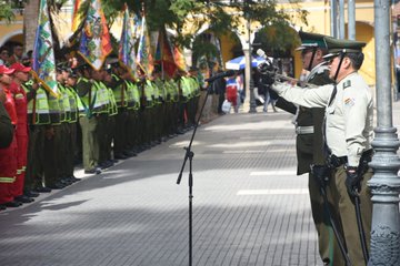 Ministro Murillo condecoró con la medalla al valor a efectivos de la UTOP en Cochabamba