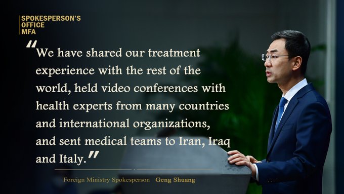 The Chinese government has pledged aid to 82 countries, WHO & AU, providing them with testing reagents, masks and protective suits. Many of these supplies have been delivered to the recipients. Assistance from Chinese local governments and civil societies are also on the way.
