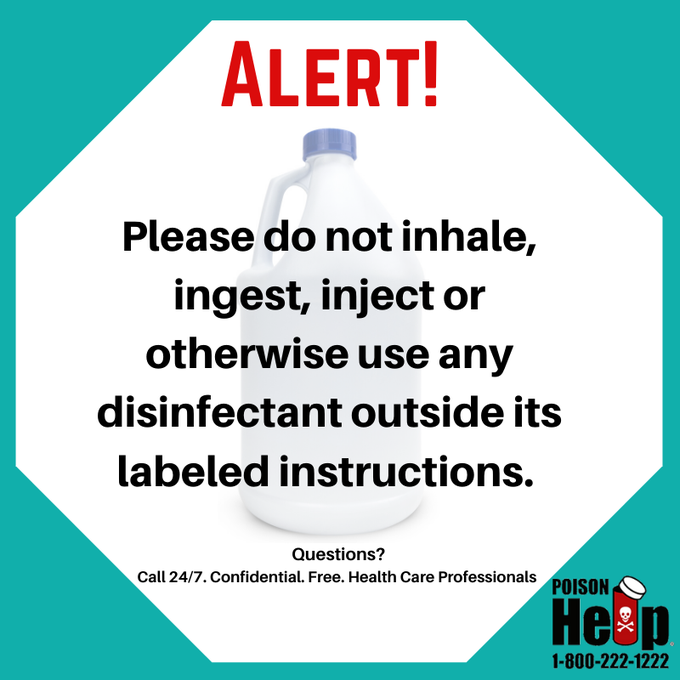 Los servicios de emergencia en Estados Unidos han atendido más de 100 casos de personas intoxicadas por lejía y productos higiénicos, luego que el presidente Donald Trump afirmara públicamente que esos productos podrían limpiar el organismo del coronavirus.