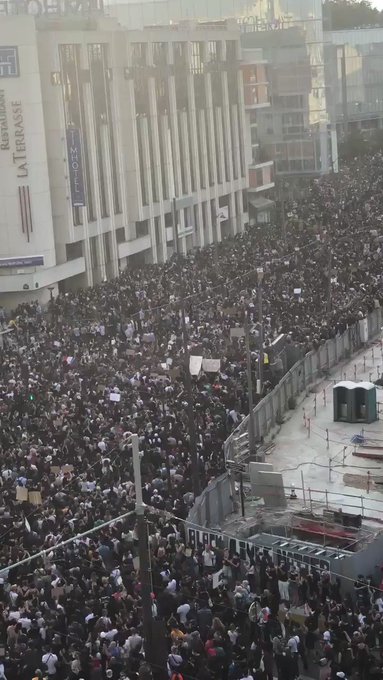 Ils sont des milliers près du TGI de #Paris. Certains posent les genoux à terre à quelques mètres des forces de l’ordre. #VeritePourAdama #France #BlackLivesMatter #AdamaTraore