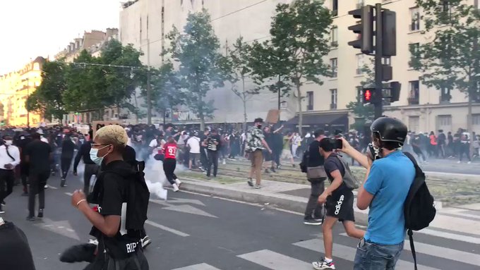 Grosses tensions en cours près Porte de Clichy à #Paris. Plusieurs tirs de gaz lacrymogènes. #VeritePourAdama #France #BlackLivesMatter #AdamaTraore