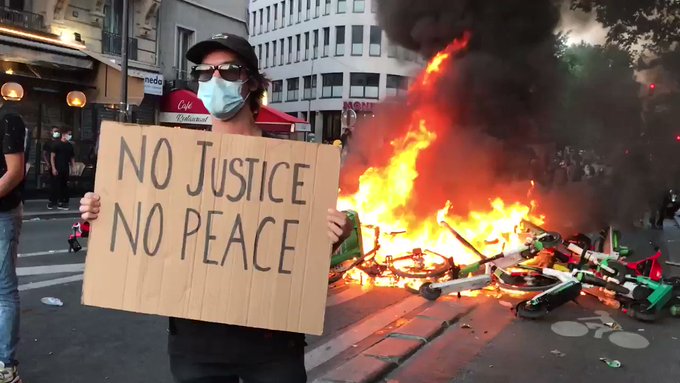 Una multitudinaria protesta contra el racismo y la brutalidad policial en París terminó este martes con enfrentamientos entre la Policía y los manifestantes. Unas 20.000 personas, inspiradas en el movimiento de protesta en EE.UU., salieron a las calles para reclamar justicia por la muerte del joven negro francés Adama Traoré, fallecido en 2016 bajo custodia policial.