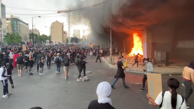 Plusieurs départs de feu au niveau de la Porte de Clichy près du TGI de Paris. #VeritePourAdama #France #BlackLivesMatter #AdamaTraore90