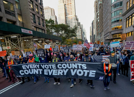 Ambos (Trump y Biden) se proclaman presidente en un sistema electoral complejo, hecho a medida para que las minorías o cualquier movimiento social y político que nazca de las raíces del pueblo, sea abortado, ahogado, sin posibilidad alguna de acceder a las instituciones que están perfectamente acorazadas y armadas por un capitalismo imperialista que ambos, demócratas» y republicanos practican desde hace un siglo.