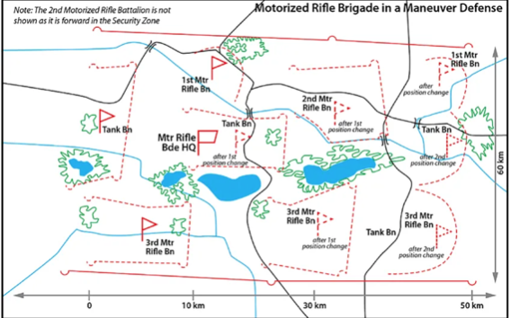 Defensa en profundidad idealizada por una brigada de fusileros motorizados