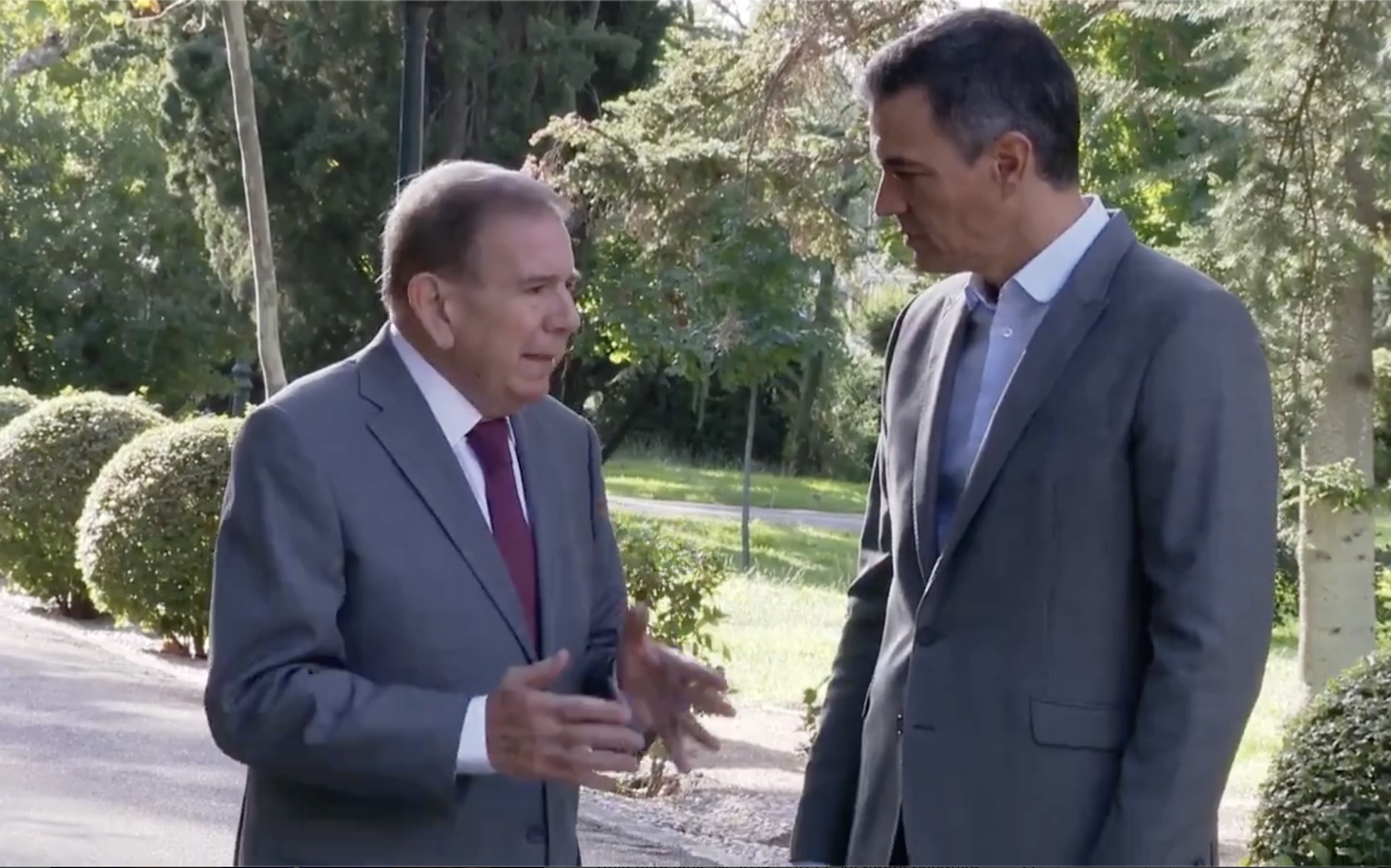 Edmundo González y Pedro Sánchez, en La Moncloa. (Captura de video)