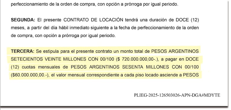 A esa cifra, además, según explica el texto, se deben sumar los gastos de expensas, electricidad, gas, internet y otros que también se pagan con plata del Estado, es decir, con dinero de las arcas públicas.